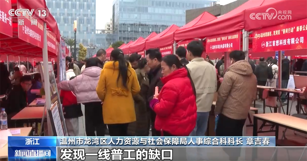 温州市龙湾区人力资源与社会保障局工作人员章吉春称:“年前我们对全区近300家企业进行了摸排,发现一线普工的缺口占比达到总缺口的70%左右,供需双方需求量还是非常大的。我们今年重点是围绕重点群体的帮扶就业工作。”