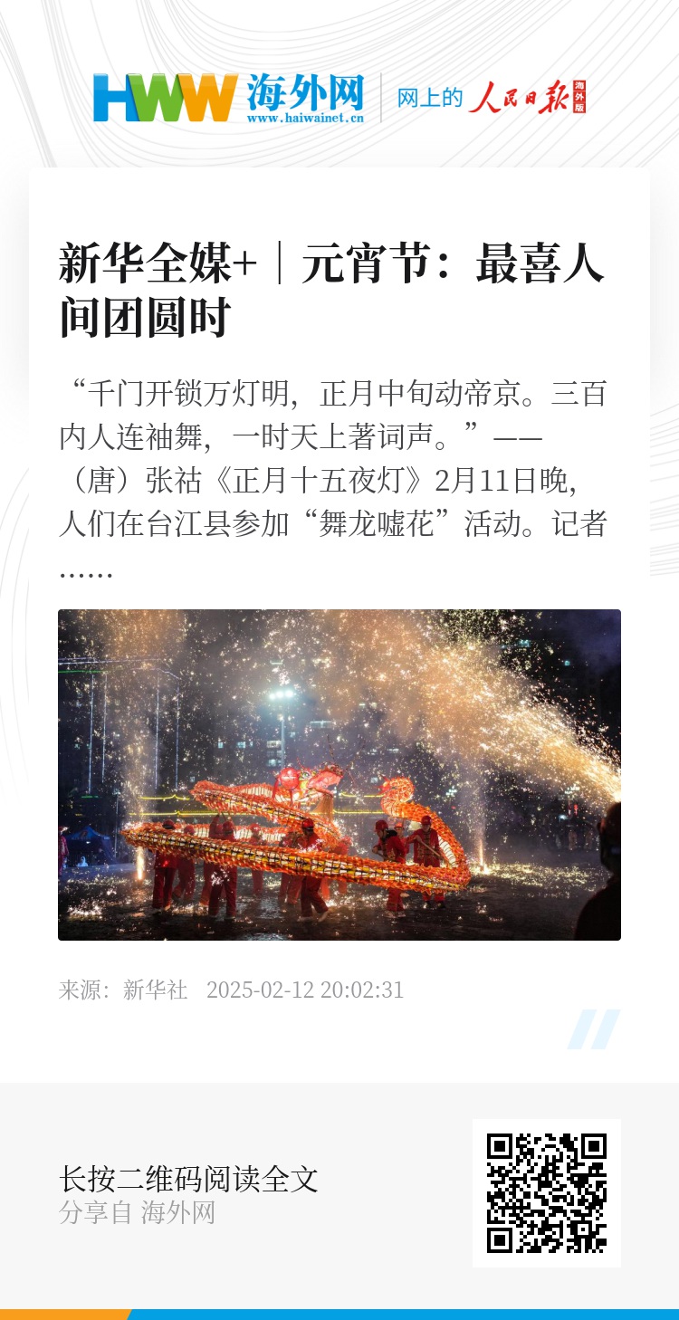 俗话说“正月十五闹元宵”,这个“闹”字特别传神。元宵佳节,人们赏花灯、猜灯谜、吃元宵,寄托对阖家团圆的美好愿景和对美好生活的无限期待。