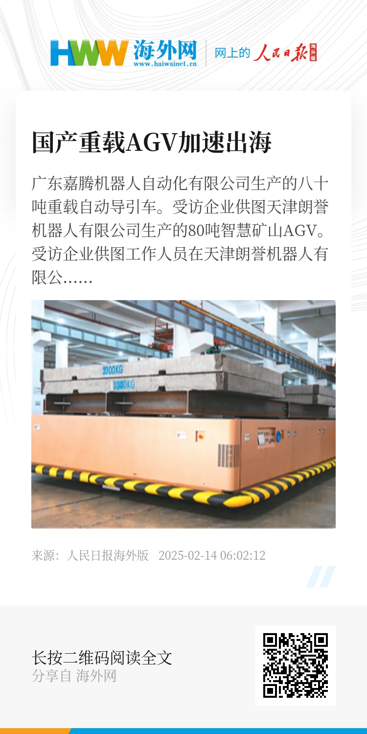 “我们在全球已有800多件服务案例,这为我们提供了宝贵的经验和数据,也将吸引更多合作伙伴和客户的关注。”单晨溪说,“相信国产重载AGV将走向世界更多国家,让更多企业能够用上中国制造的智能装备。”(记者 孙懿)