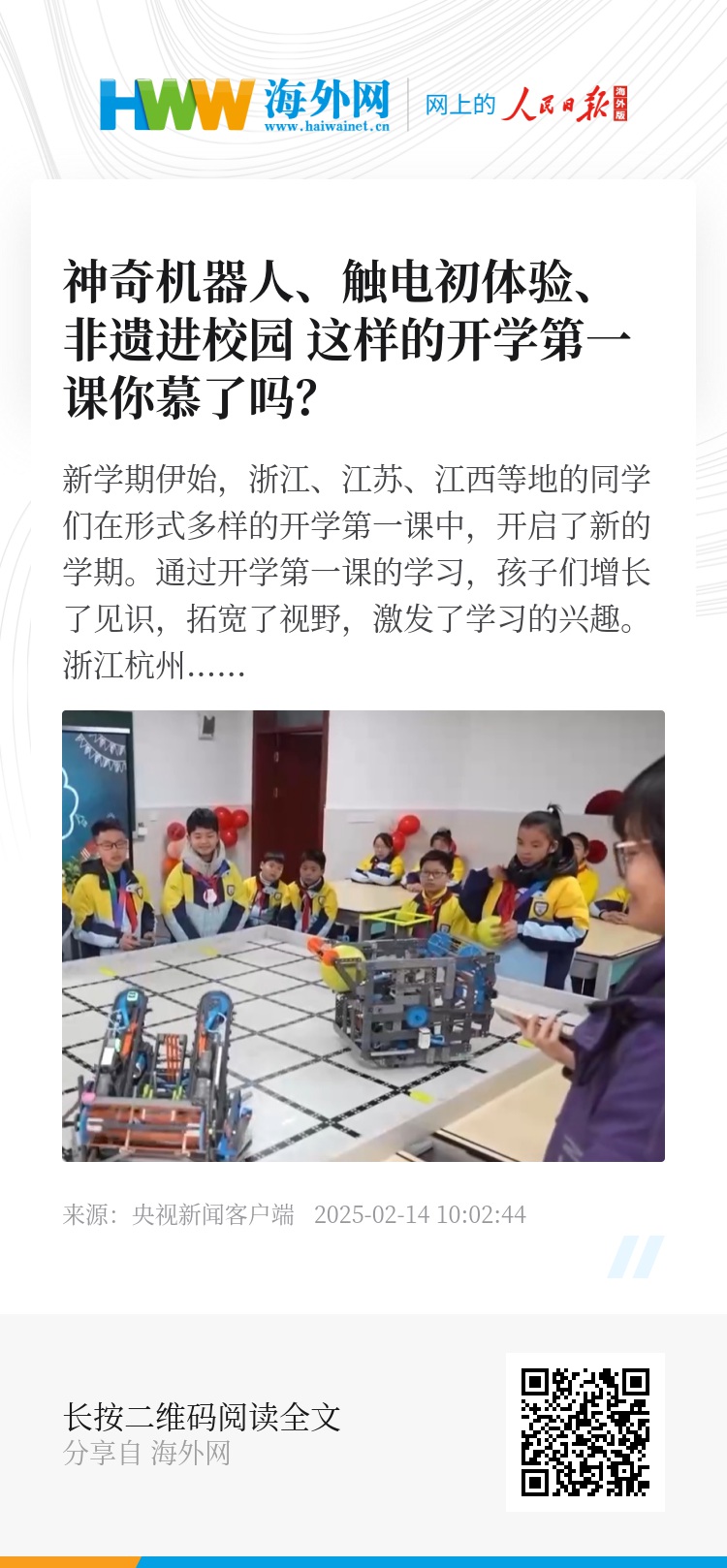 在浙江省杭州市桐庐县,这里学校的开学第一课以“科技”“创新”为主题,带领学生们走进神奇的机器人世界。