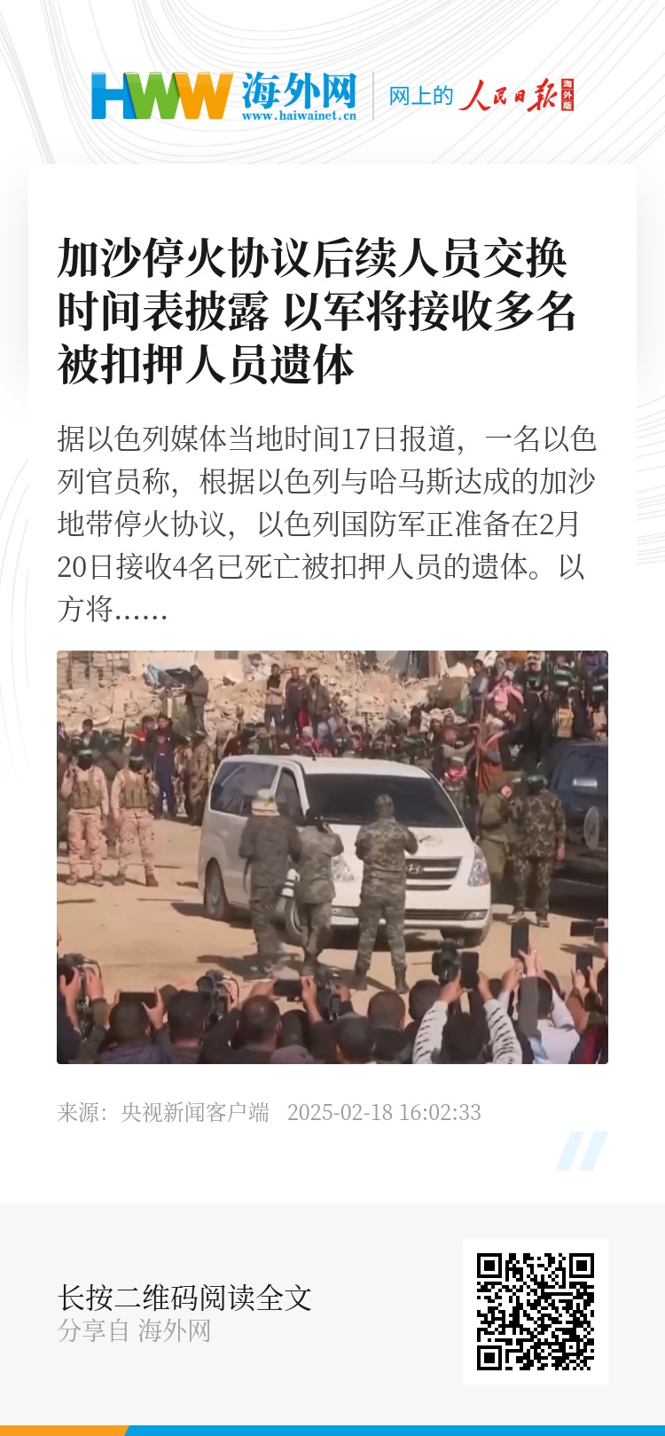目前这一时间表还没有得到以色列官方以及哈马斯方面的确认。