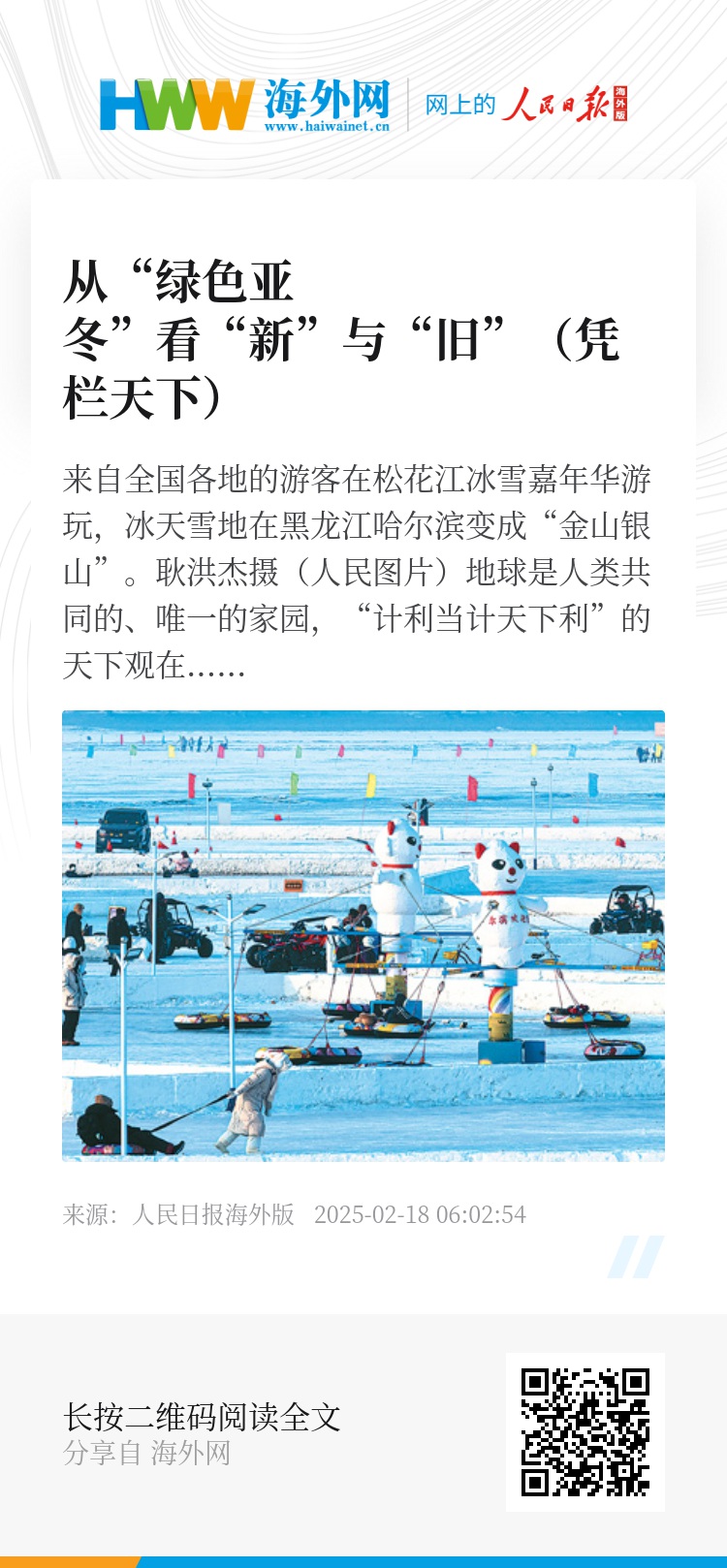 第九届亚冬会虽已结束,绿色的理念却仍将常“新”。这一曲“新”与“旧”的交响中,可以确定的是,我们离实现美丽中国的目标越来越近了。(刘发为)