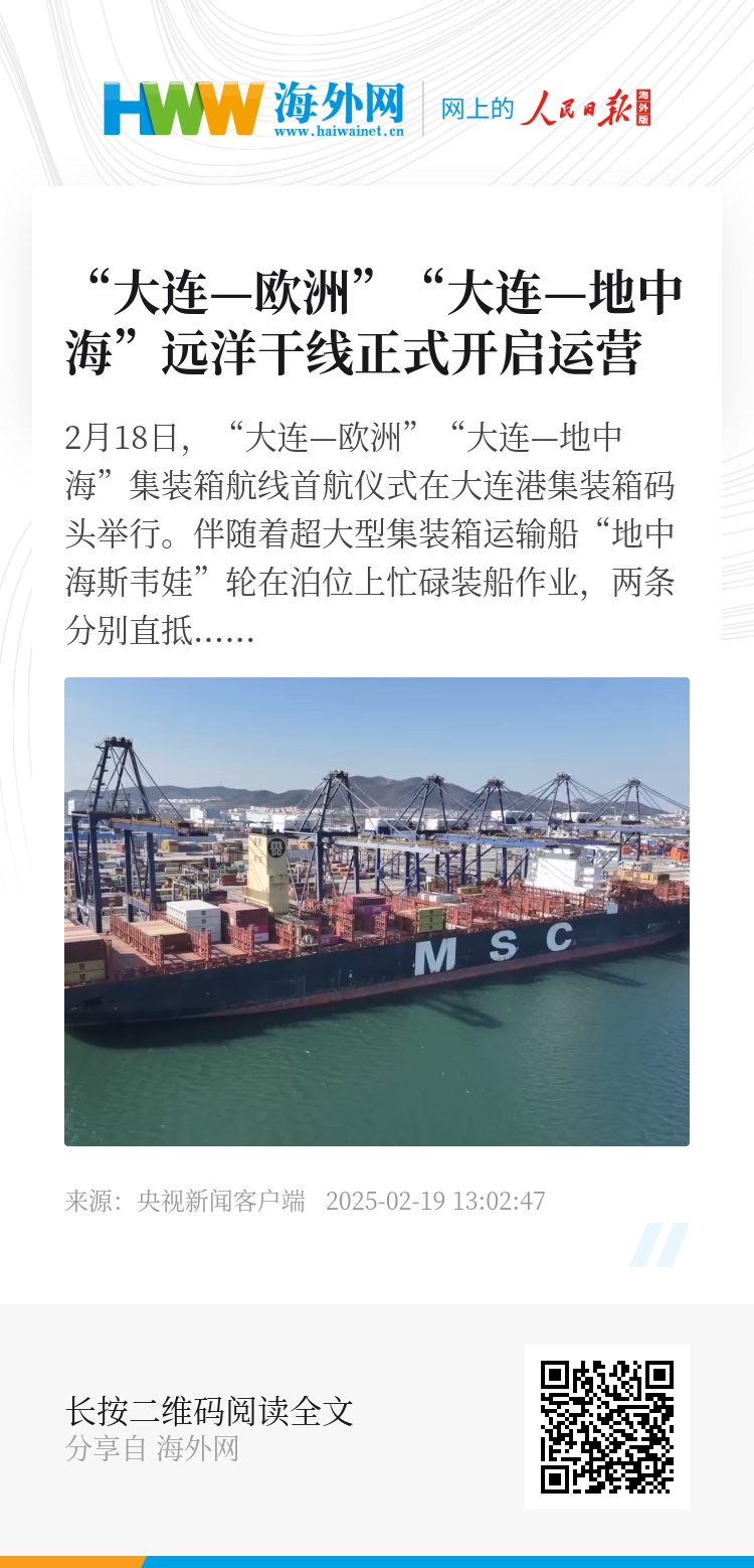 大连港作为东北地区的重要海运枢纽,积极开拓口岸与腹地货源,拓展与完善集装箱航线网络,高效助力东北亚国际航运中心和东北海陆大通道建设。(总台记者 陶泽文 李一凡)