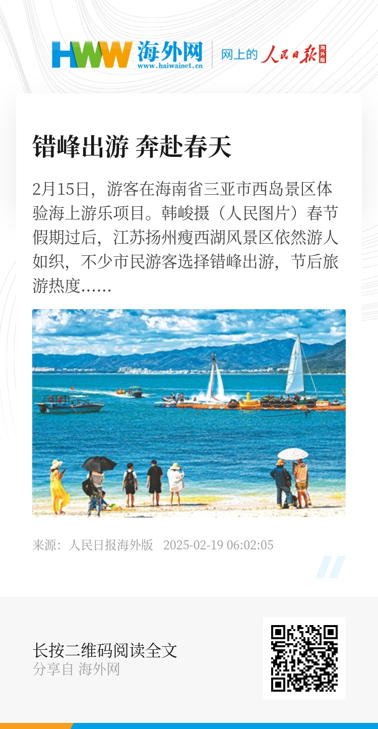 春节假期过后,国内旅游市场回归常态,多地机票、酒店等价格回落,吸引出行时间较为灵活的游客开启春游。多家旅行平台数据显示,2025年春节假期后错峰出游人数同比已超去年,55—70岁游客节后出游咨询量增长明显,部分游客选择长线游、出境游等,当下气候温和的海南、云南等目的地受到青睐。