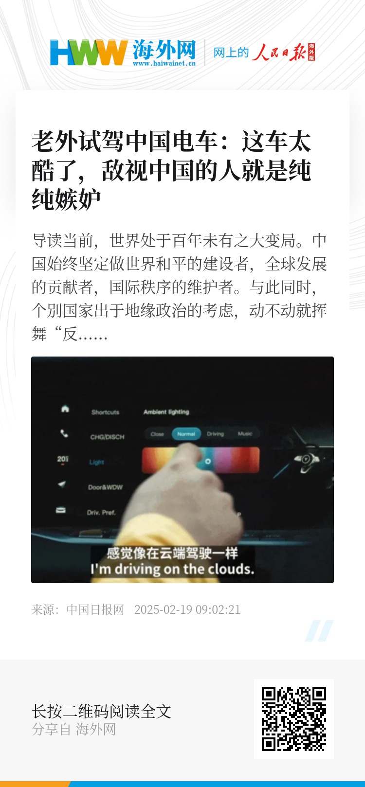 近年来,中国新能源产业快速发展,助力全球绿色低碳转型。中国电动汽车物美价廉,受到多国消费者喜爱。