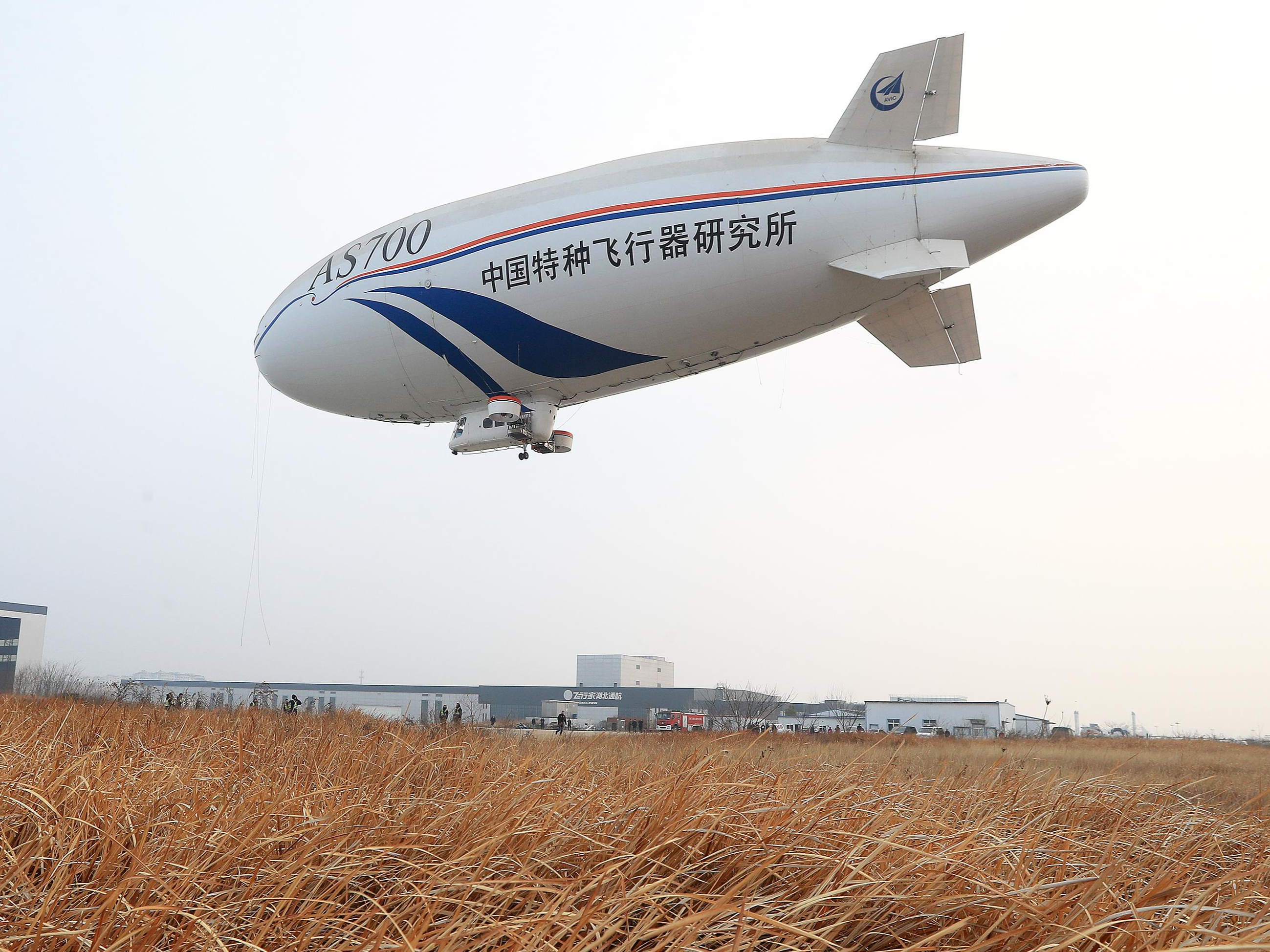 中航工业特飞所AS700载人飞艇总设计师周雷表示,它是面向我们能源新技术发展做的一个科研艇,它主要是对环境更加友好,排放为零 ,噪声更低。后续我们将根据首飞的特性,安排科研试飞,还有我们专门设计的性能测试飞行。