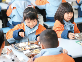 2月18日,浙江省湖州市德清县春晖小学食堂内,小学生们在享用营养午餐。新学期开始,德清县全面推广由浙江大学注册营养师团队定制的营养餐,确保学生吃得安心、吃得健康、吃得科学。谢尚国摄(人民视觉)