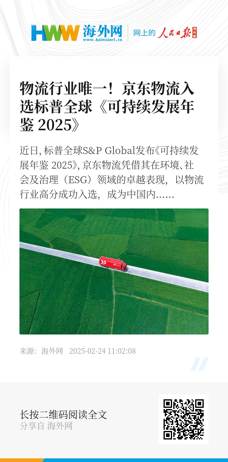 近日,标普全球S&P Global发布《可持续发展年鉴 2025》,京东物流凭借其在环境、社会及治理(ESG)领域的卓越表现,以物流行业高分成功入选,成为中国内地物流行业唯一入选企业,排名跻身全球行业前列。