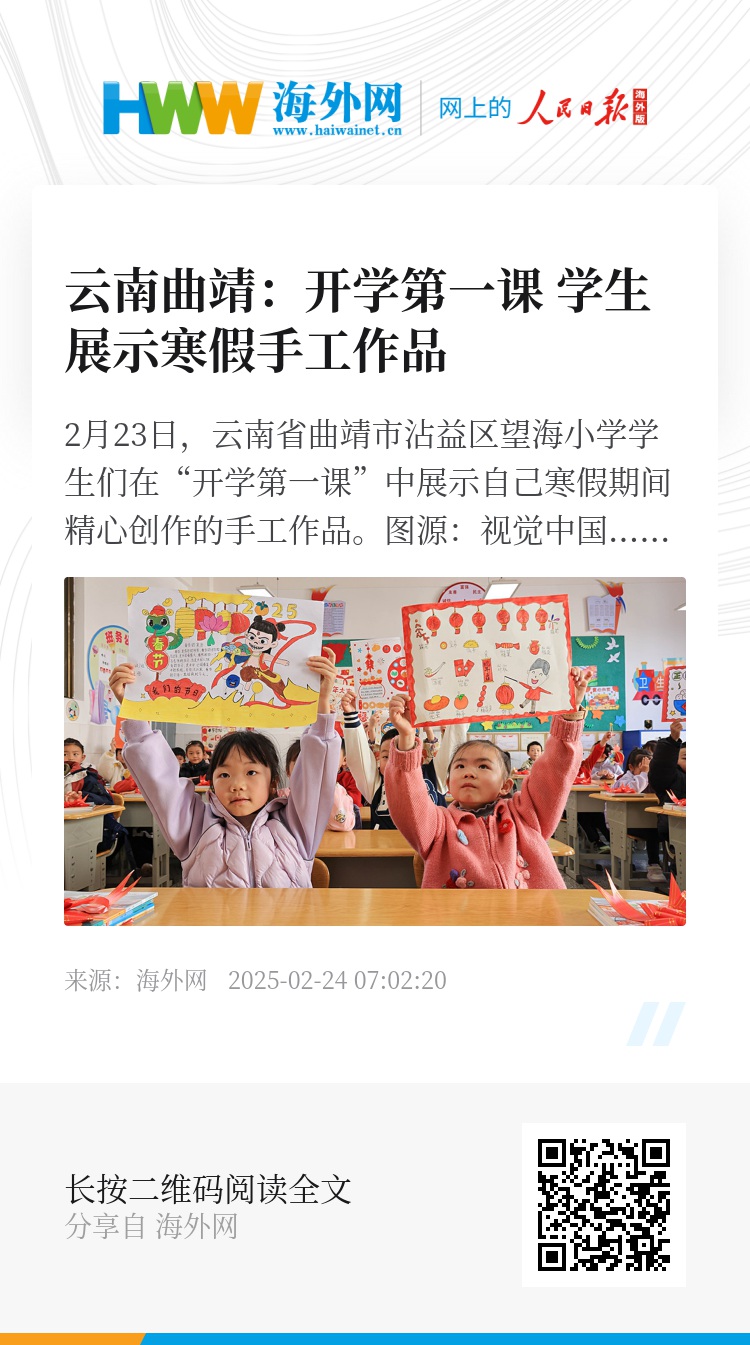 32840271,.云南曲靖:开学第一课 学生展示寒假手工作品,.2025-02-24 07:14:20,.204441,.张荣耀、卢思宇