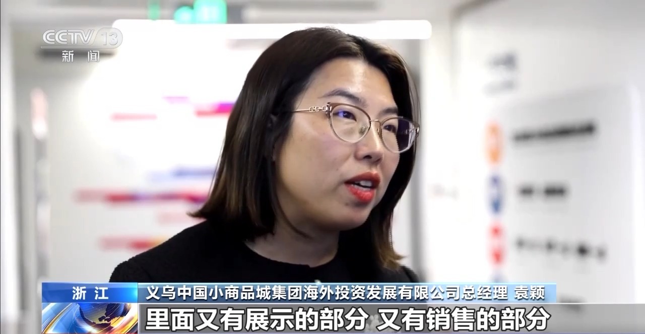 义乌中国小商品城集团海外投资发展有限公司总经理 袁颖:里面又有展示的部分,又有销售的部分,要在非洲、中东和中亚这些地区,等于说我在海外复制了很多个小市场,义乌大市场赋能全球小市场焕新。