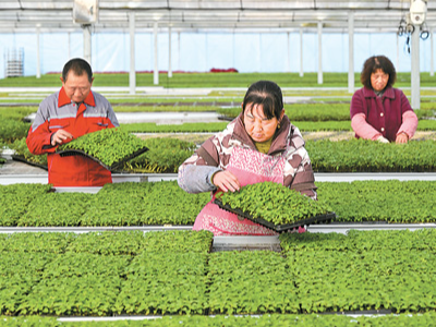 浙江省宁波市镇海区九龙湖镇聚焦农业高质量发展,集中培育水稻、瓜果、蔬菜等优质种苗,有效提升农业生产效率。图为早春时节,工作人员在镇海区九龙湖镇种苗培育基地管护菜苗。胡学军 摄(新华社发)