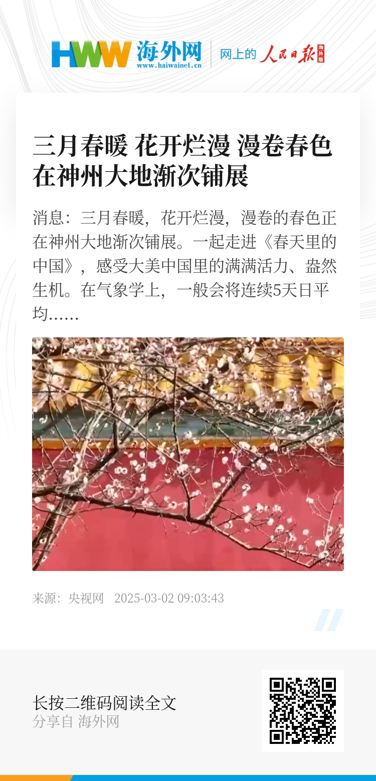 央视网消息:三月春暖,花开烂漫,漫卷的春色正在神州大地渐次铺展。一起走进《春天里的中国》,感受大美中国里的满满活力、盎然生机。