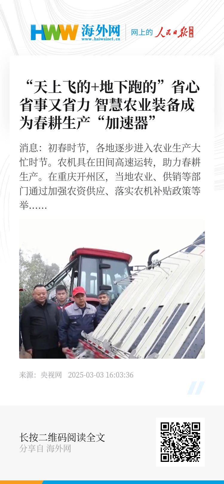 在重庆开州区,当地农业、供销等部门通过加强农资供应、落实农机补贴政策等举措,保障不误农时。