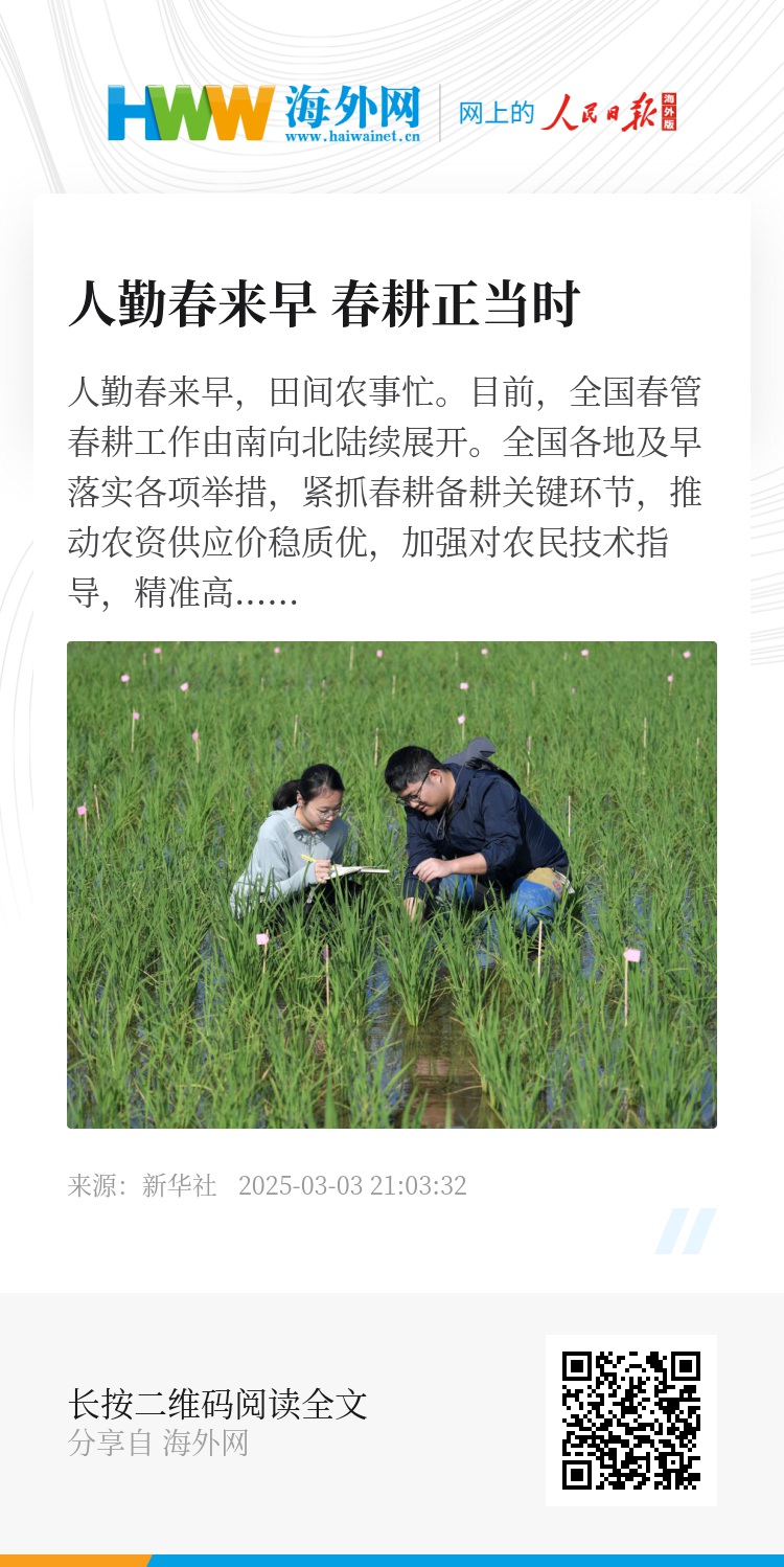 政策有保障、农资供应足、防灾有办法、科技多赋能……春耕春管正当时,锦绣画卷正绘就,一首首奋进乐章正在神州大地奏响!