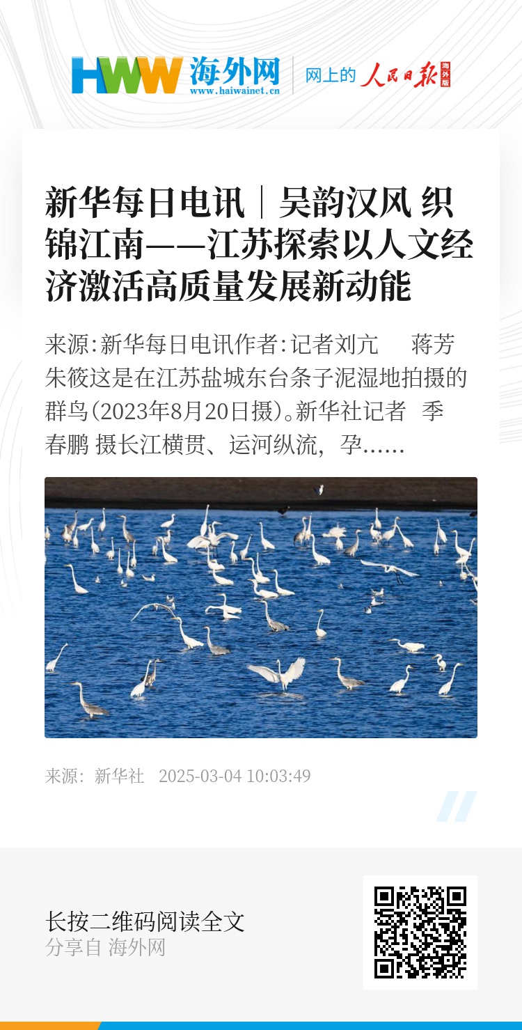 风传花信,雨濯春尘。以千年文脉承托经济高质量发展,以经济发展繁荣现代文明,江苏不断织密人文鼎盛与经济繁荣的“双面绣”,努力推动人文底蕴转化为经济高质量发展巨大动力的“关键一跃”,奋力作答“文化很发达的地方,经济照样走在前面”的时代命题。