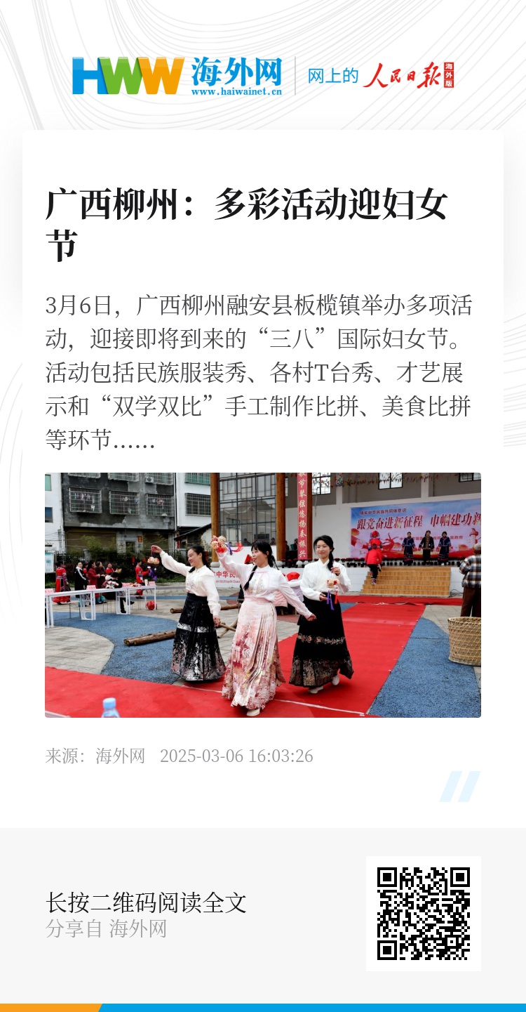 3月6日,广西柳州融安县板榄镇举办多项活动,迎接即将到来的“三八”国际妇女节。活动包括民族服装秀、各村T台秀、才艺展示和“双学双比”手工制作比拼、美食比拼等环节,旨在为当地女性同胞们提供一个展示自我、实现价值的舞台。图源:IC photo