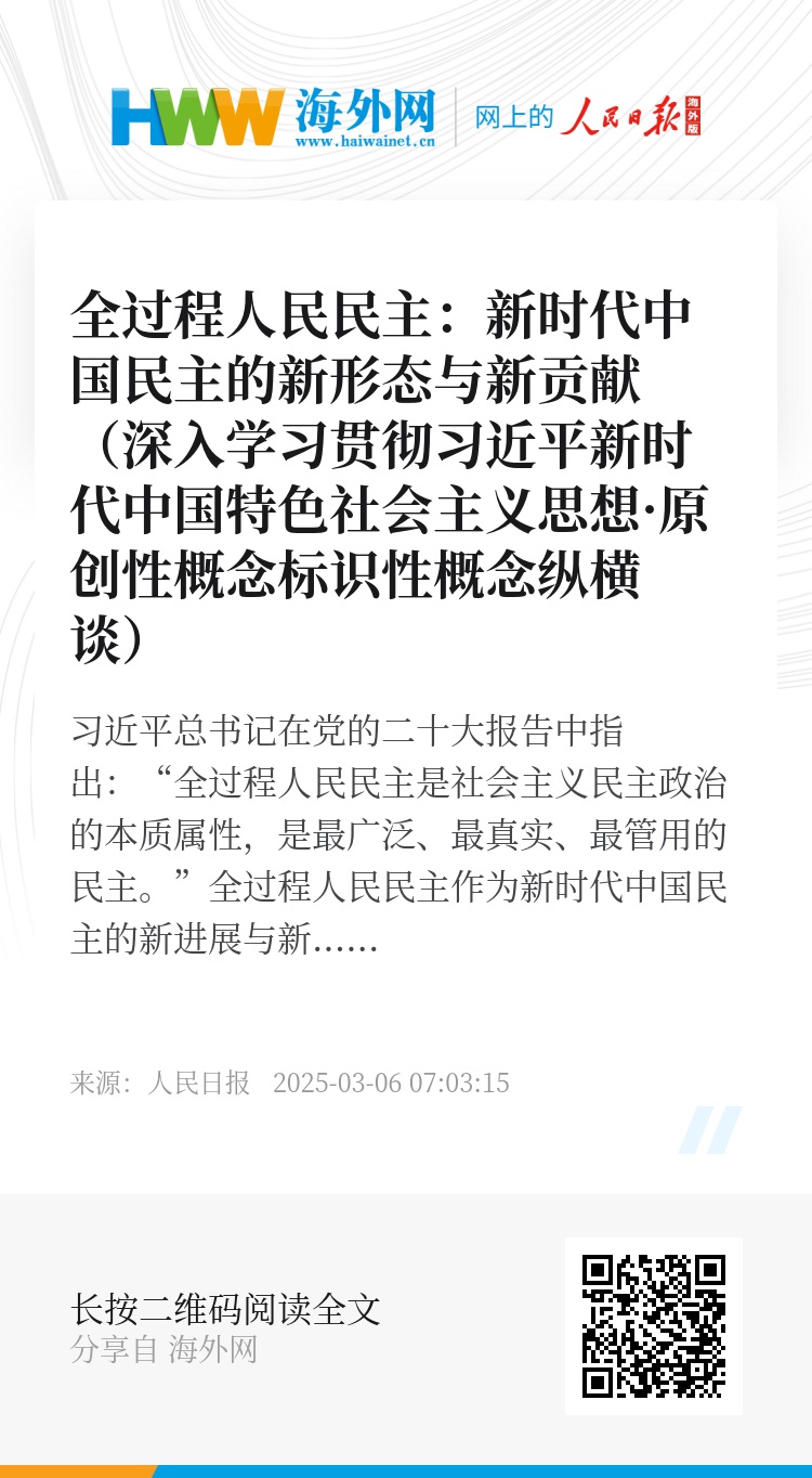 全过程人民民主是中国特色社会主义民主政治的鲜明标识