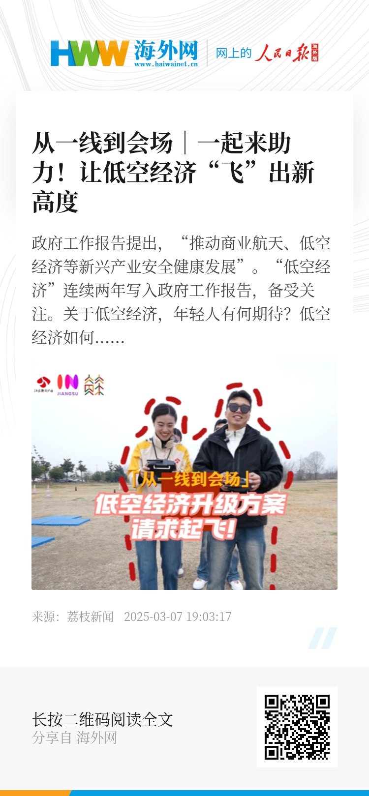 “低空经济”连续两年写入政府工作报告,备受关注。关于低空经济,年轻人有何期待?低空经济如何“飞”出发展新高度?