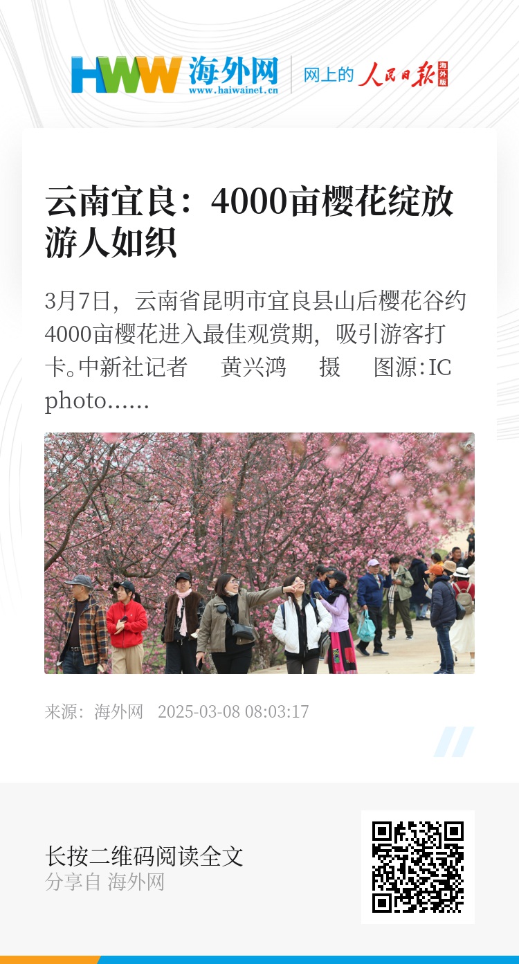 32843929,.云南宜良:4000亩樱花绽放 游人如织,.2025-03-08 08:46:17,.204441,.张荣耀、刘凌