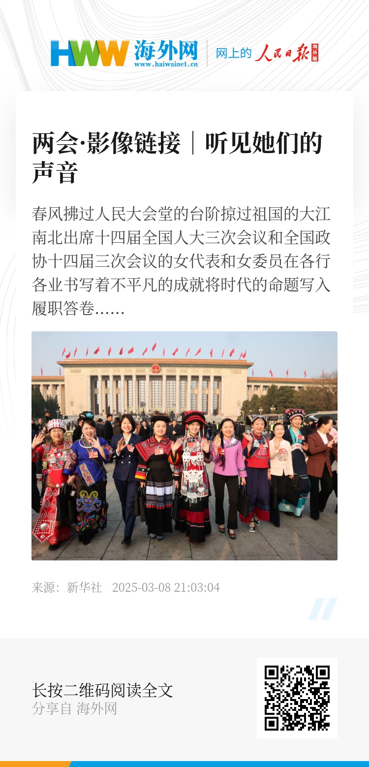 3月8日,第十四届全国人民代表大会第三次会议第二场“代表通道”集中采访活动在北京人民大会堂举行。这是全国人大代表盛弘(左)和杨宝玲向广大妇女致以节日祝福。新华社记者 吕帅 摄