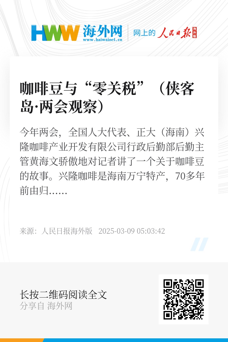 去年1月,黄海文提出建议:将咖啡生豆纳入海南自贸港“零关税”正面清单。一年后,海南自贸港原辅料“零关税”政策调整,咖啡生豆真的上了清单,企业省下关税钱,“原料买全球”也更有底气。