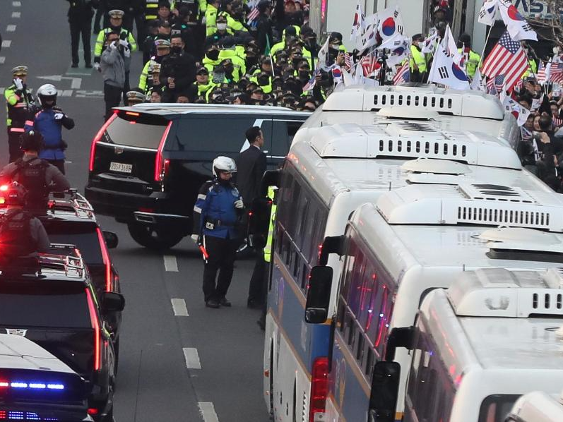 3月8日,尹锡悦乘坐的车辆抵达汉南洞总统官邸入口。新华社记者姚琪琳摄