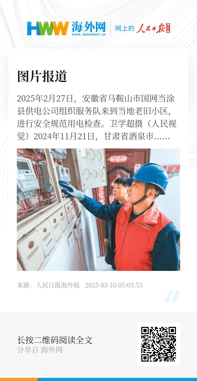2025年2月27日,安徽省马鞍山市国网当涂县供电公司组织服务队来到当地老旧小区,进行安全规范用电检查。