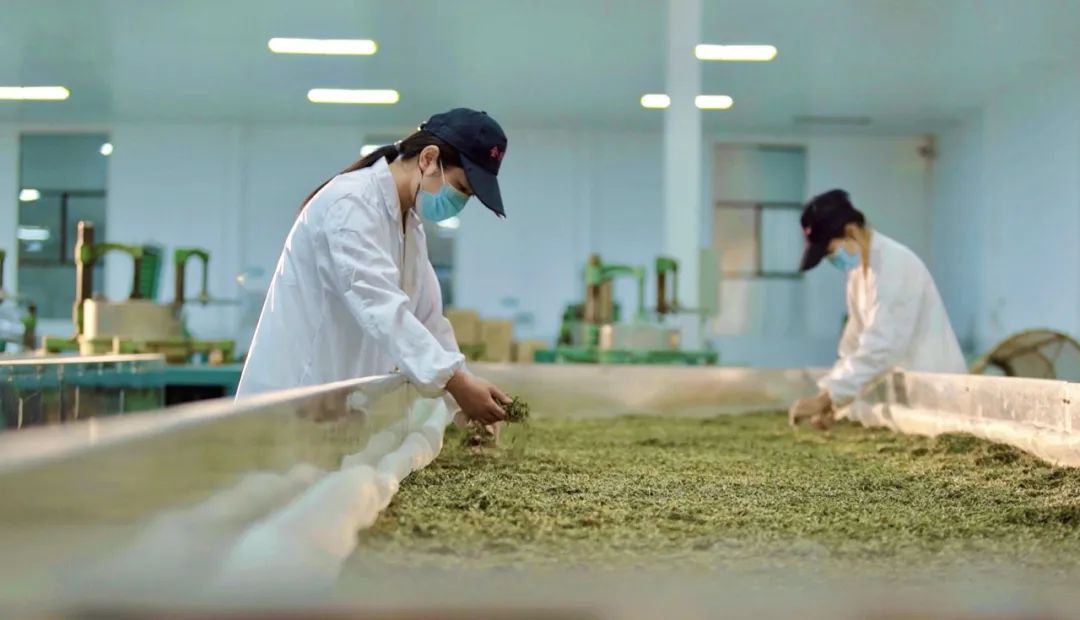 秦汉古茶公司车间里,工人在对茶叶叶片进行萎凋。(平利县委宣传部供图)