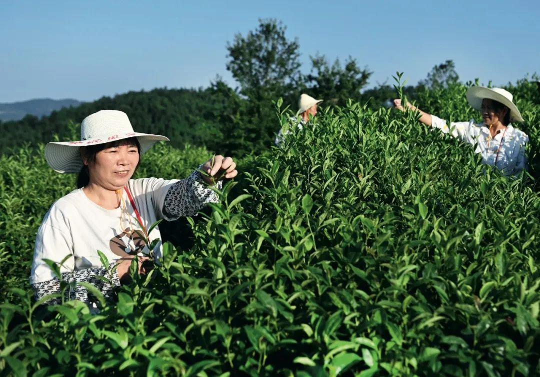 蒋家坪村村民在采摘茶叶。(平利县委宣传部供图)
