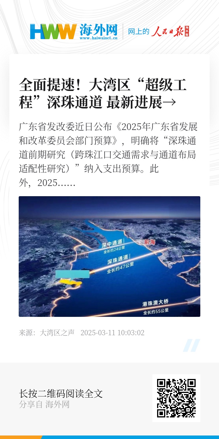 深珠通道工程一直备受关注。自去年以来,深圳、珠海两市均全力推进项目实施,具体细节和推进计划逐渐明朗。