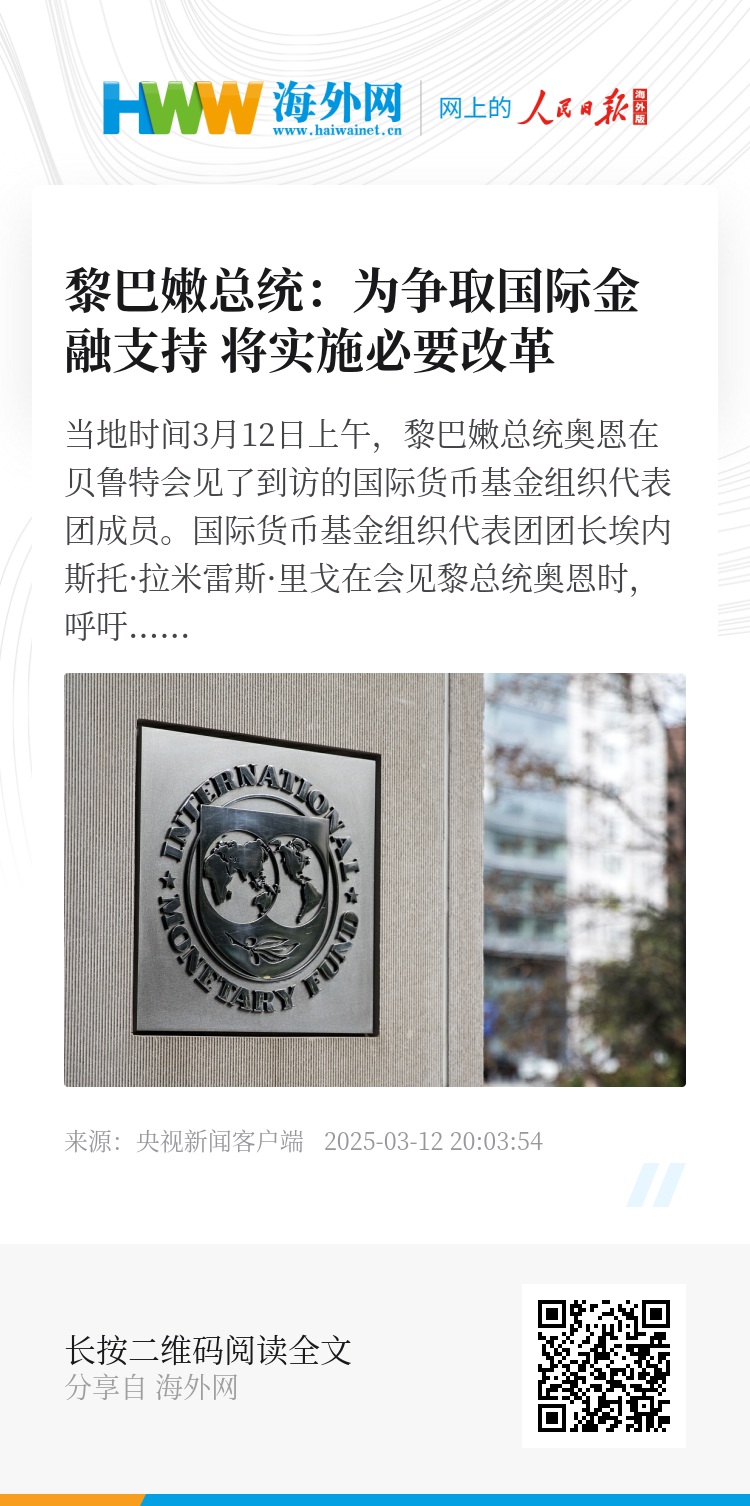 国际货币基金组织代表团团长埃内斯托·拉米雷斯·里戈在会见黎总统奥恩时,呼吁制定统一的金融改革计划,以帮助黎巴嫩获得贷款、克服金融和经济困难。黎巴嫩总统奥恩则重申,为了争取国际金融支持,黎巴嫩致力于实施必要改革。