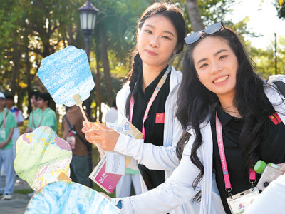 游客小吴端详着桌上的漆扇,犹豫着要不要尝试制作。旁边的一位女孩向她问道:“要一起试试吗?”她点点头,两人并肩坐下,在店主的指导下,一笔一画地在扇面上勾勒着细腻的纹路。她们一边动手,一边聊起了彼此的手工经历,甚至交换了联系方式,约定以后一起尝试更多DIY体验。“消费不只是为了得到一件商品,更是和别人共度一段美好的时光。”小吴说。
