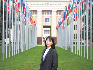 宋紫婷在联合国日内瓦办事处万国宫前。