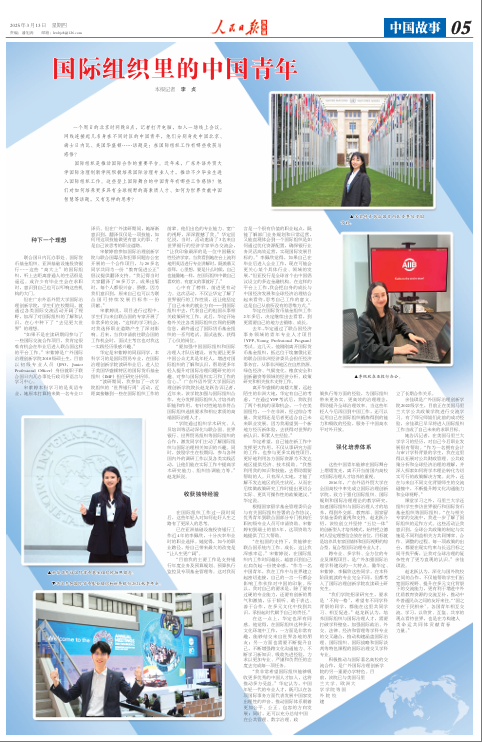 国际组织是推动国际合作的重要平台。近年来,广东外语外贸大学国际治理创新学院积极培养国际治理专业人才,推动不少毕业生进入国际组织工作。这些登上国际舞台的中国青年有哪些工作感悟?他们对如何培养更多具有全球视野的高素质人才、如何为世界贡献中国智慧等话题,又有怎样的思考?
