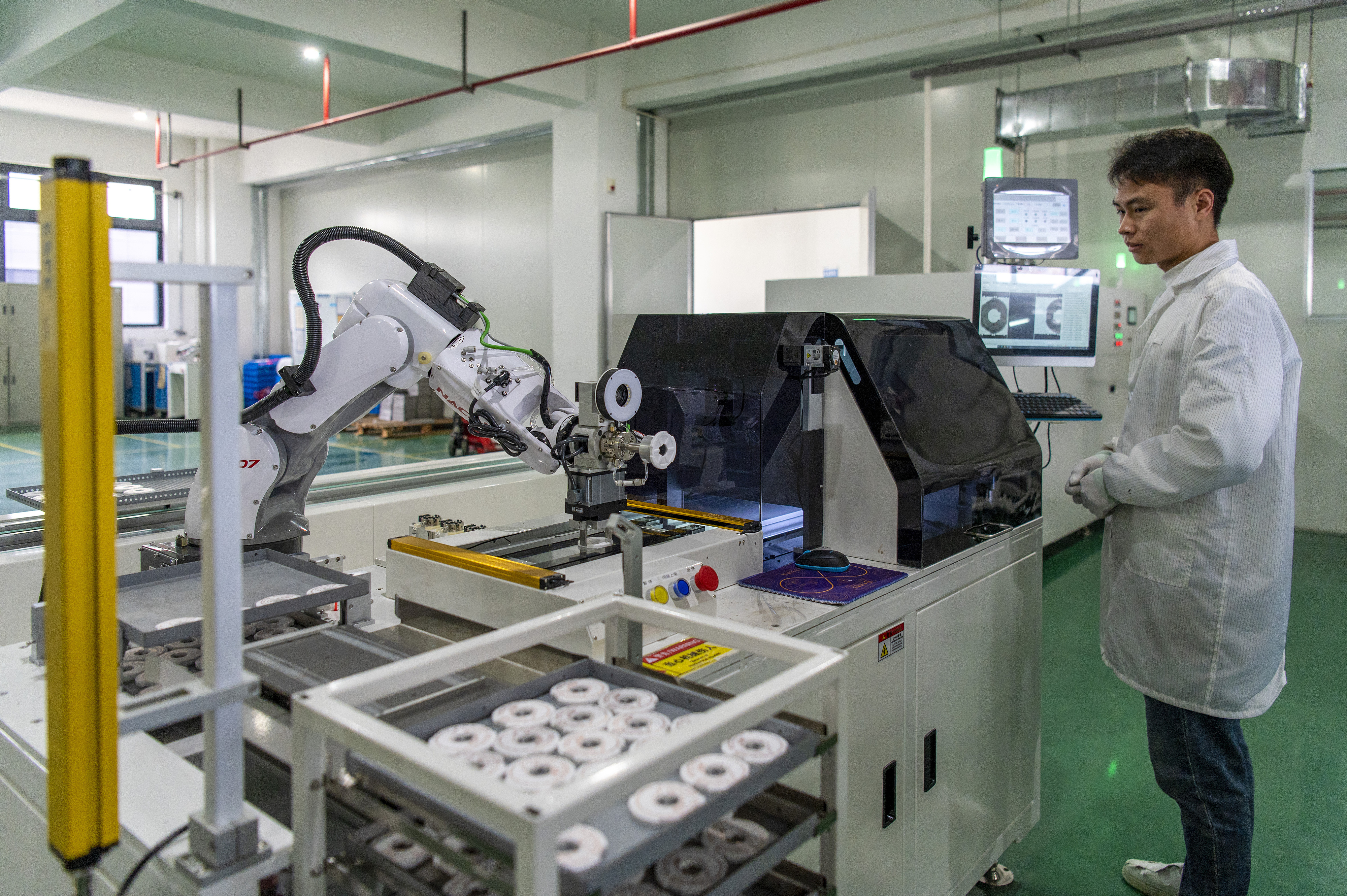 △2025年3月11日,在浙江省金华市浦江三思光电技术有限公司自动化生产线上,一只只机械臂灵活运转着,赶订单、忙生产。