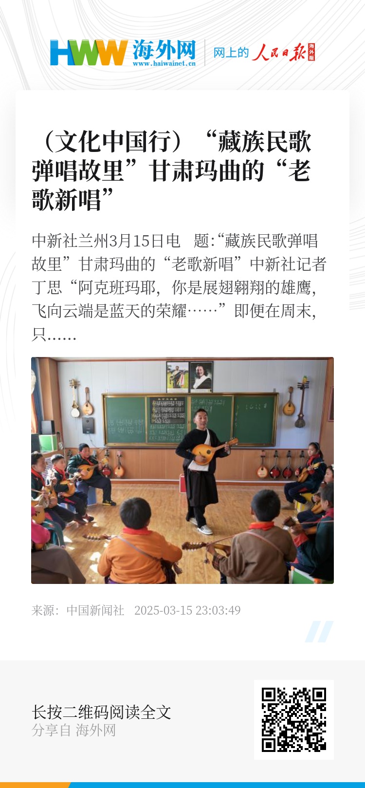 中新社兰州3月15日电 题:“藏族民歌弹唱故里”甘肃玛曲的“老歌新唱”