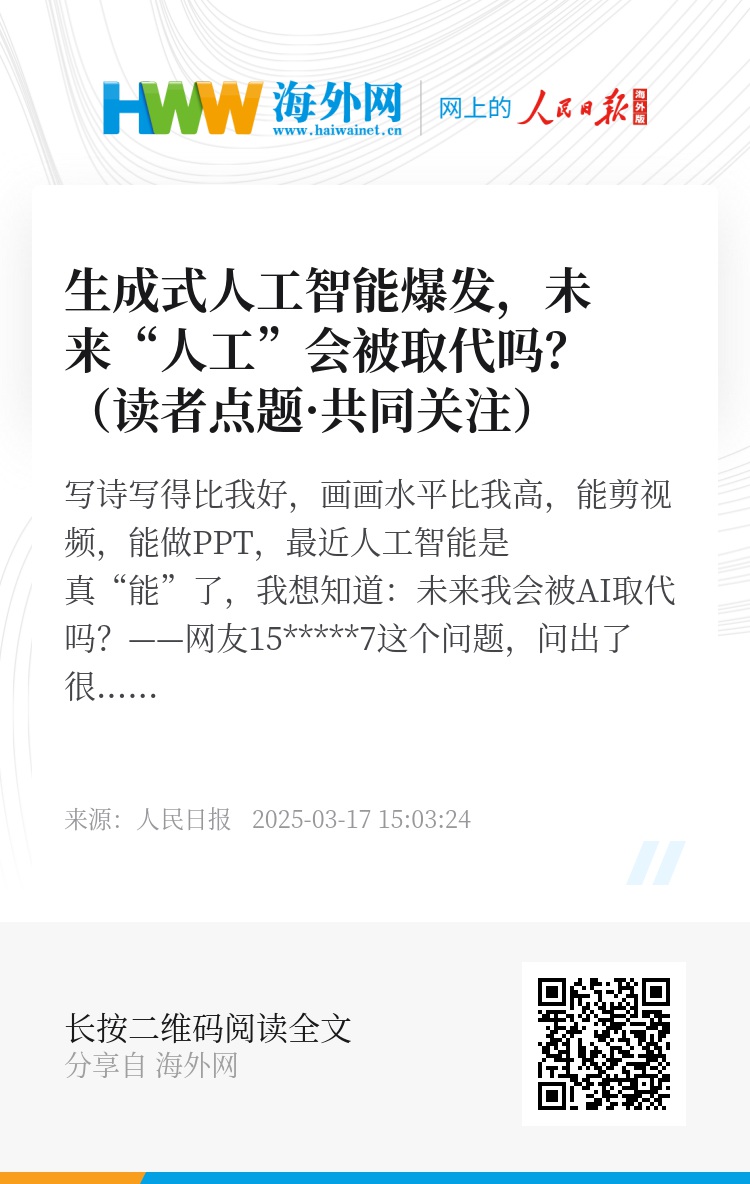 其实,这不是新问题。人类对人工智能有多少好奇,就有多少忧虑。当前,生成式人工智能爆发,AI如同水电一样成为智能生活的基础设施,让老问题有了新的紧迫感。