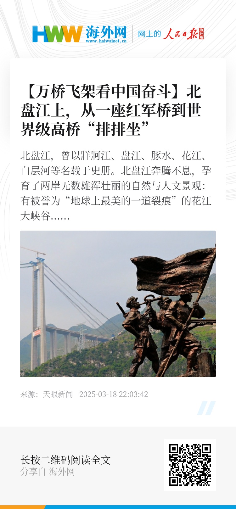 北盘江上,从一座红军桥到世界级高桥“排排坐”,贵州儿女以敢教日月换新天的豪情,在崇山峻岭间书写着新时代的“山河答卷”。