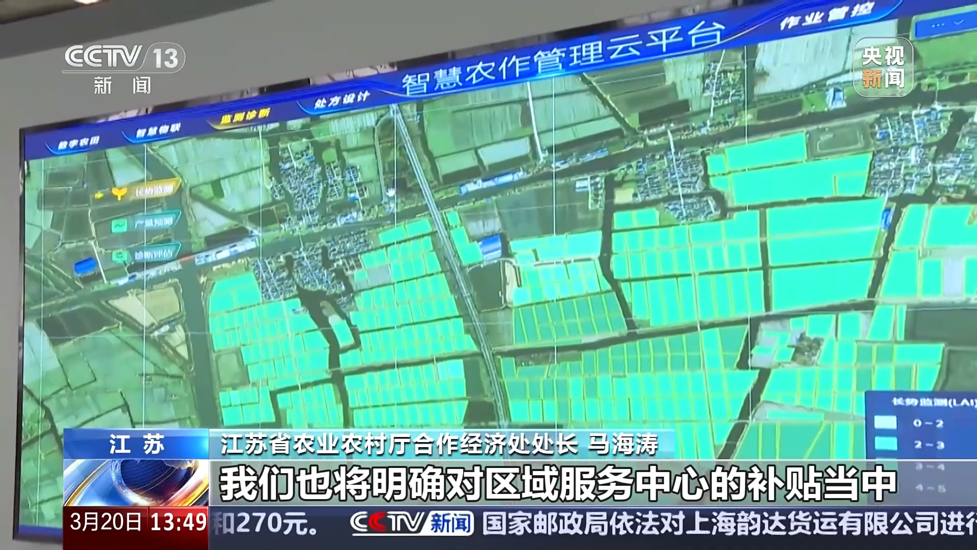 江苏省农业农村厅合作经济处处长 马海涛:最近我们也在制定区域综合服务中心资金奖补政策,明确财政资金可以对区域服务中心的运营进行补贴,我们也将明确对区域服务中心的补贴当中,补贴资金重点用于对小农户的支持,对小农户开展农业生产作业服务。