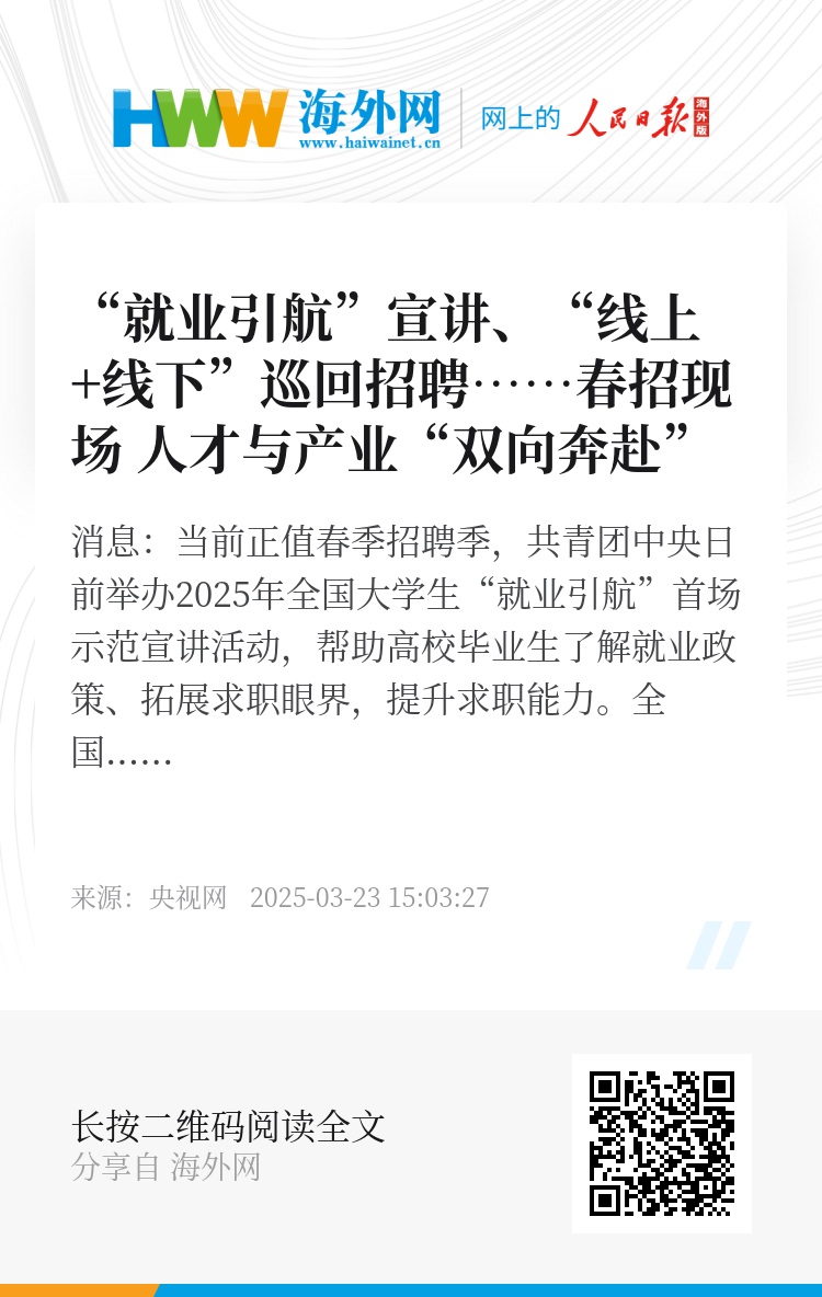 央视网消息:当前正值春季招聘季,共青团中央日前举办2025年全国大学生“就业引航”首场示范宣讲活动,帮助高校毕业生了解就业政策、拓展求职眼界,提升求职能力。