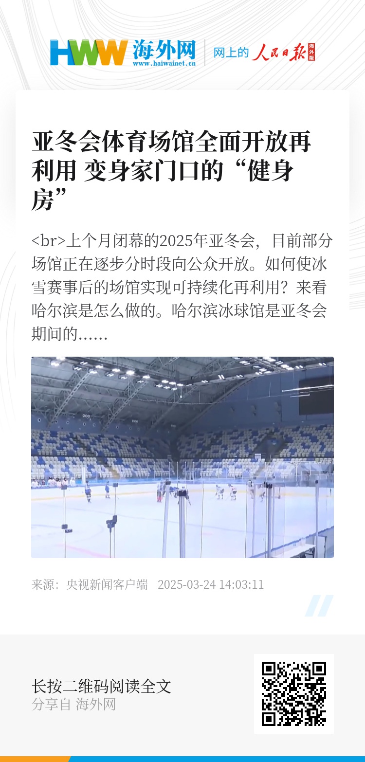 上个月闭幕的2025年亚冬会,目前部分场馆正在逐步分时段向公众开放。如何使冰雪赛事后的场馆实现可持续化再利用?来看哈尔滨是怎么做的。