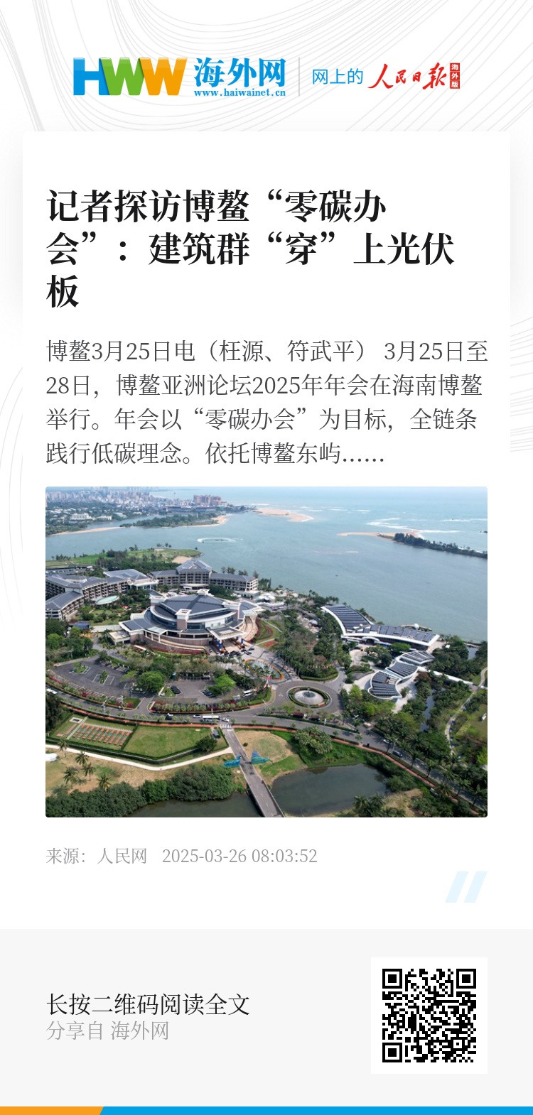 年会以“零碳办会”为目标,全链条践行低碳理念。依托博鳌东屿岛近零碳示范区,海南通过绿色电力、新能源交通、可回收材料搭建及绿色会务管理,打造国际级“低碳样板间”。从会场的环保建材到全岛覆盖的光伏、风能设施,从3500套可持续文具到900余台新能源摆渡车,细节中深藏“零碳密码”,彰显中国推动绿色发展的创新智慧。