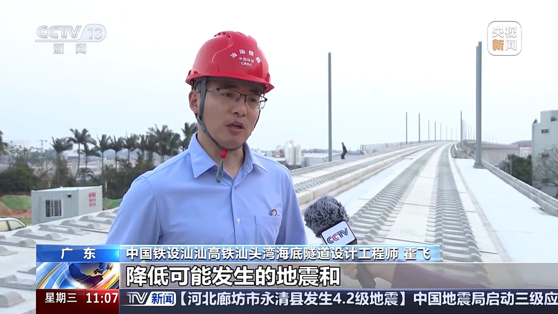 中国铁设汕汕高铁汕头湾海底隧道设计工程师 霍飞:对盾构管片的防水垫进行了多次优化,同时,研制出了新型的抗裂材料,降低海水渗漏和隧道开裂腐蚀的风险。