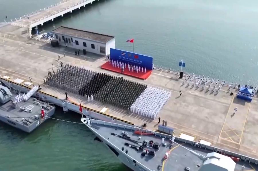 上午9时许,中泰“蓝色突击-2025”海军联合训练正式拉开序幕。此次联训期间,参训官兵将区分海上、陆上两个方向,展开联合反水雷、对海打击、海上搜救和轻武器射击、格斗、野战生存等多项训练。