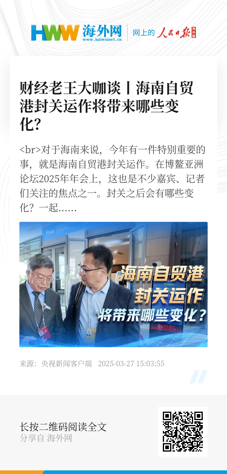 对于海南来说,今年有一件特别重要的事,就是海南自贸港封关运作。在博鳌亚洲论坛2025年年会上,这也是不少嘉宾、记者们关注的焦点之一。封关之后会有哪些变化?一起来了解。