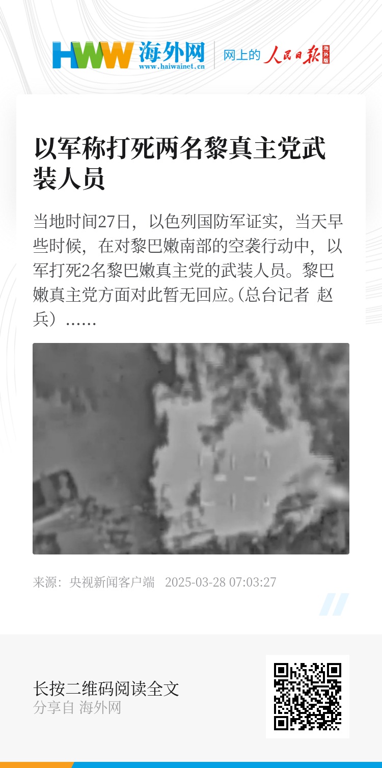 黎巴嫩真主党方面对此暂无回应。(总台记者 赵兵)