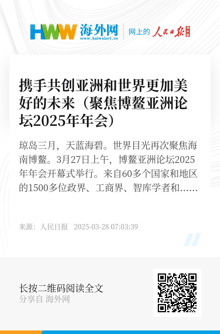 琼岛三月,天蓝海碧。世界目光再次聚焦海南博鳌。