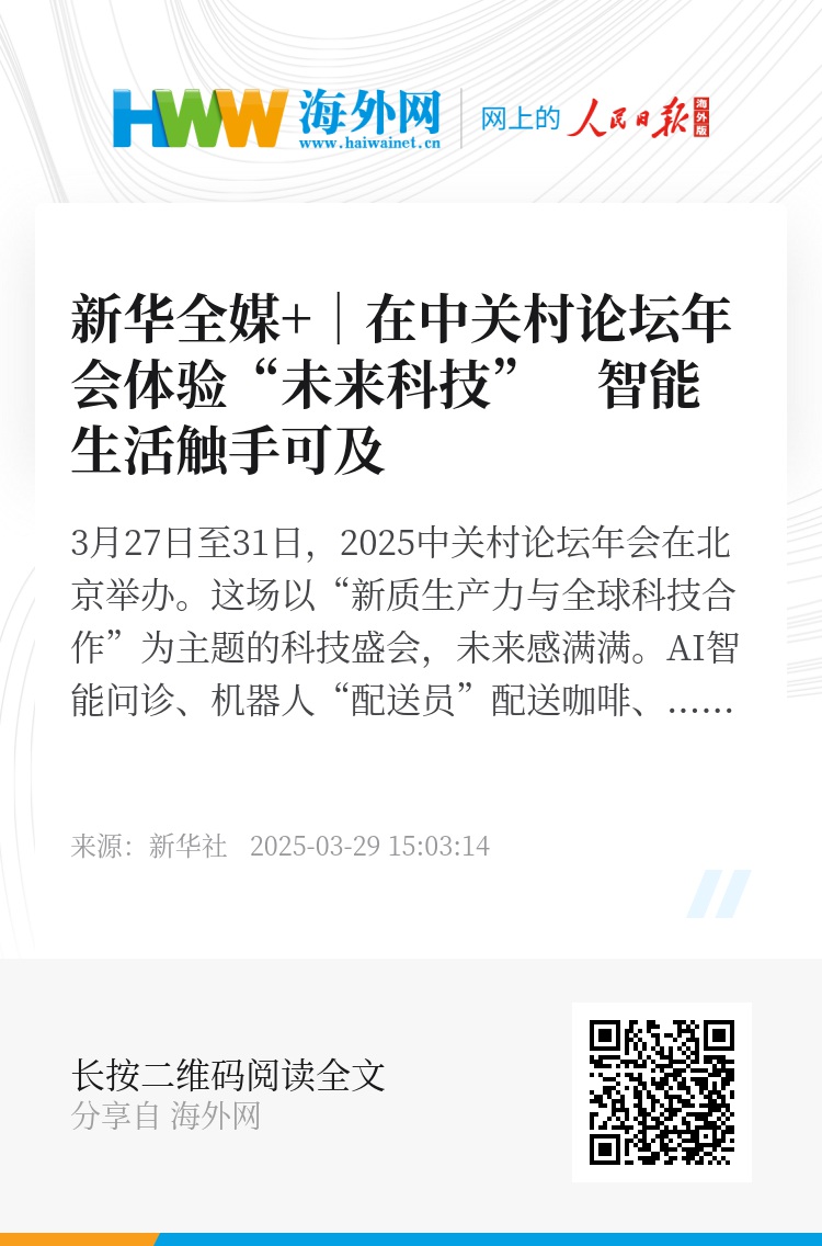3月27日至31日,2025中关村论坛年会在北京举办。这场以“新质生产力与全球科技合作”为主题的科技盛会,未来感满满。