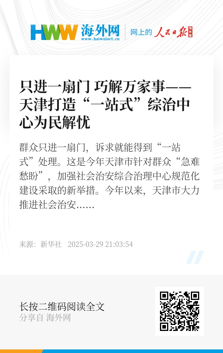 群众只进一扇门,诉求就能得到“一站式”处理。这是今年天津市针对群众“急难愁盼”,加强社会治安综合治理中心规范化建设采取的新举措。