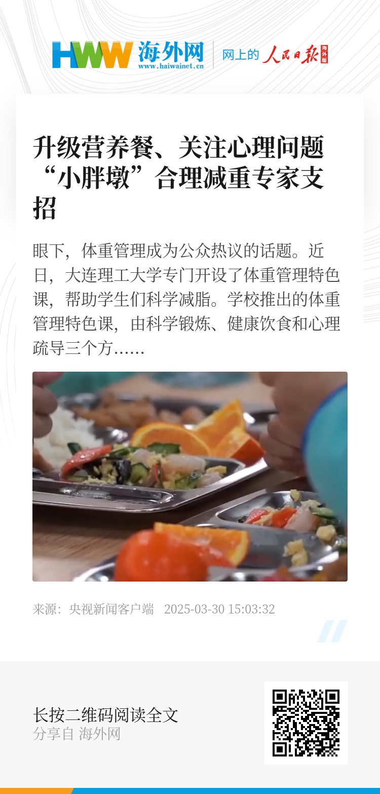 除了大学生,小学生的肥胖问题也是不容忽视的。在辽宁大连,学校根据医生的建议升级营养餐,帮助小朋友们从日常饮食上吃出健康来。